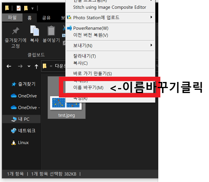 | 3. 이름 바꾸기를 클릭합니다. |