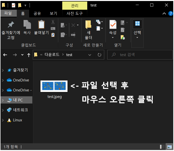 | 2. 파일을 선택하고 마우스 오른쪽 버튼을 클릭합니다. |