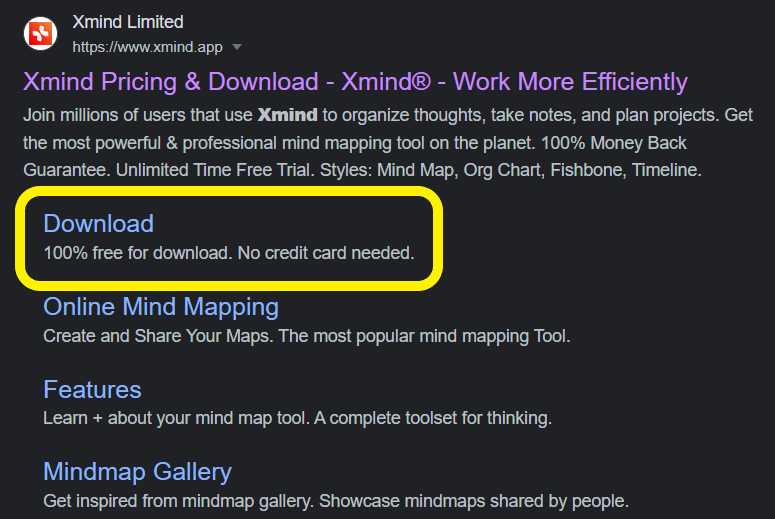 Xmind로 검색하셔서 아래 다운로드 링크를 클릭합니다. 주소창에서 xmind.app/download를 직접 입력하셔도 되고 아래의 이미지를 클릭하셔도 됩니다.