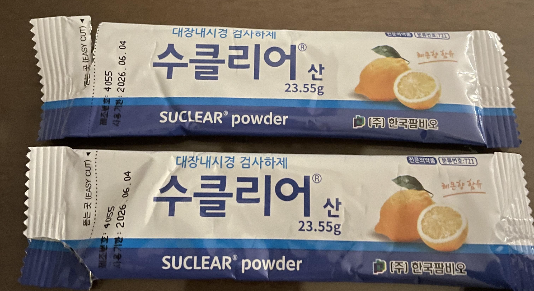 475ml 물에 수클리어 한 봉지를 타서 먹고 물을 그만큼 두 번 먹는 건데요