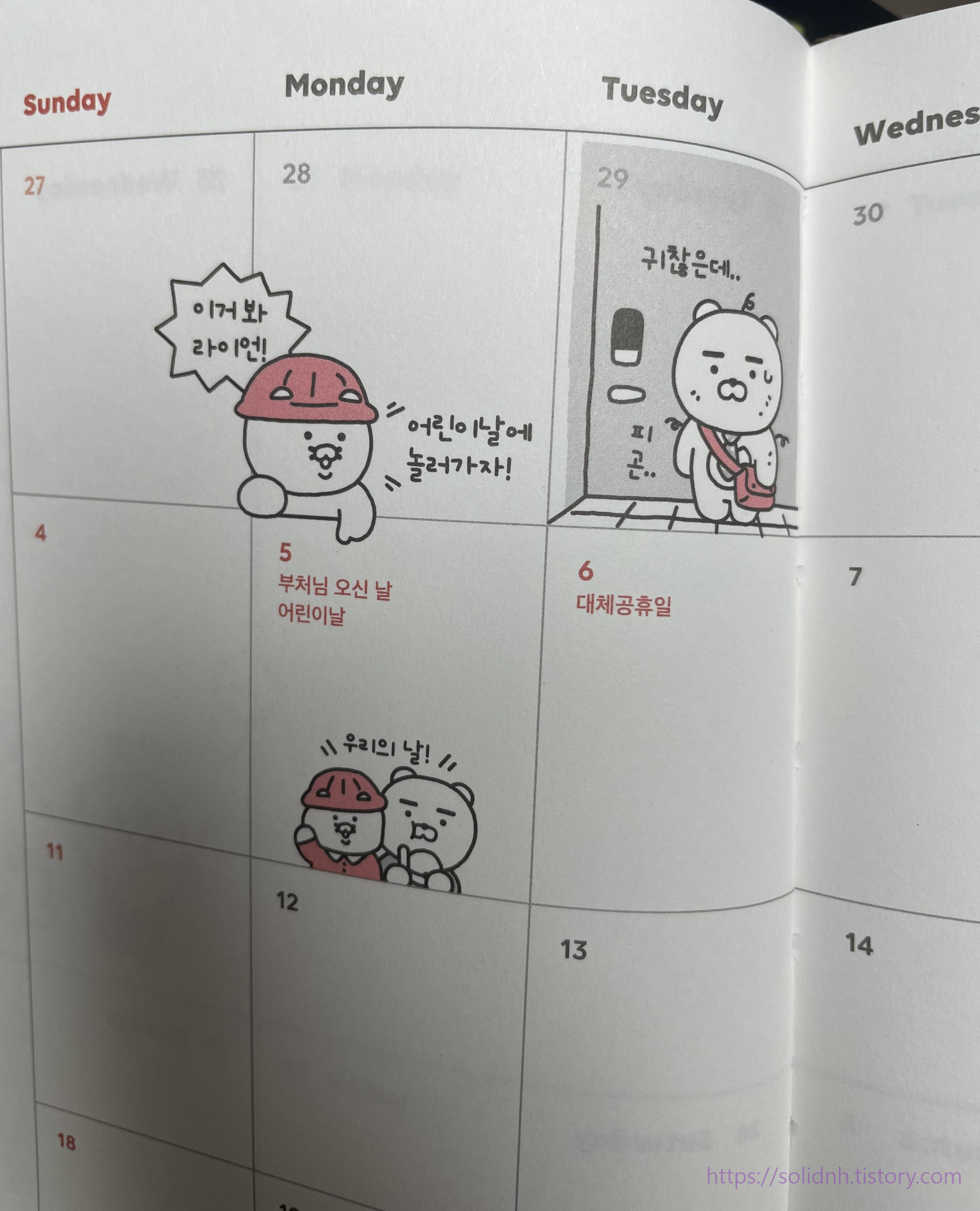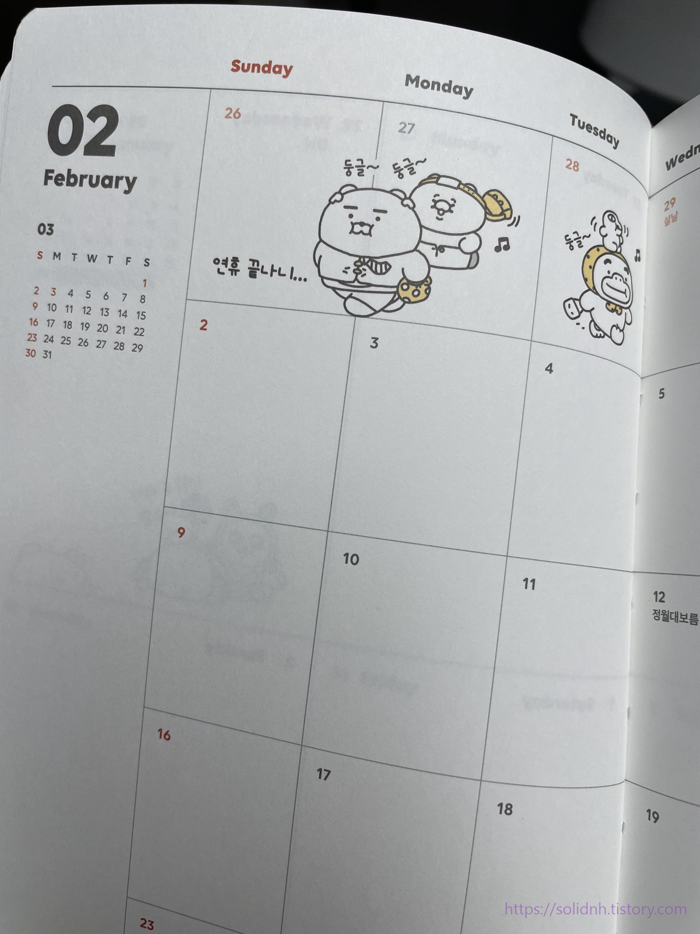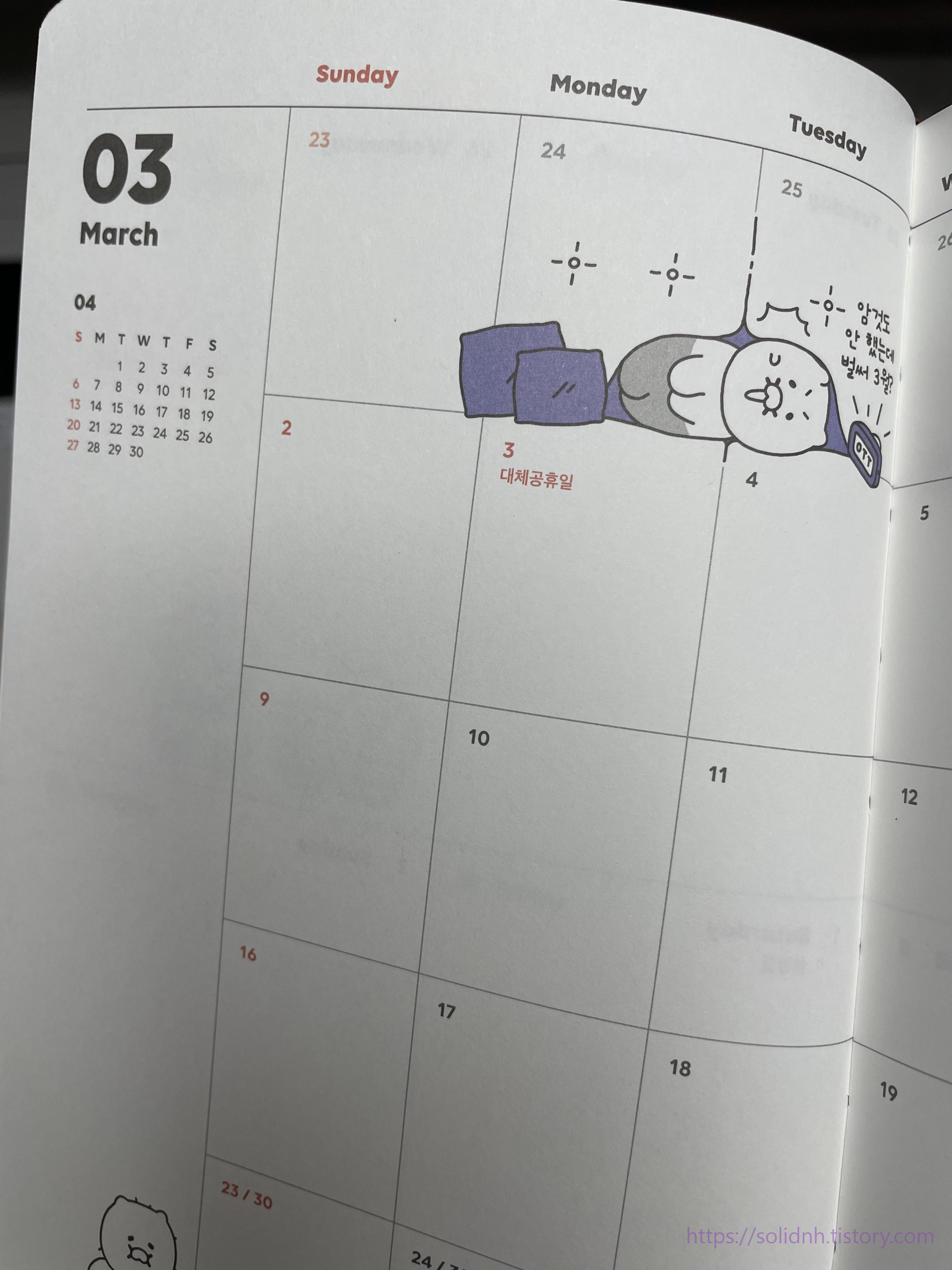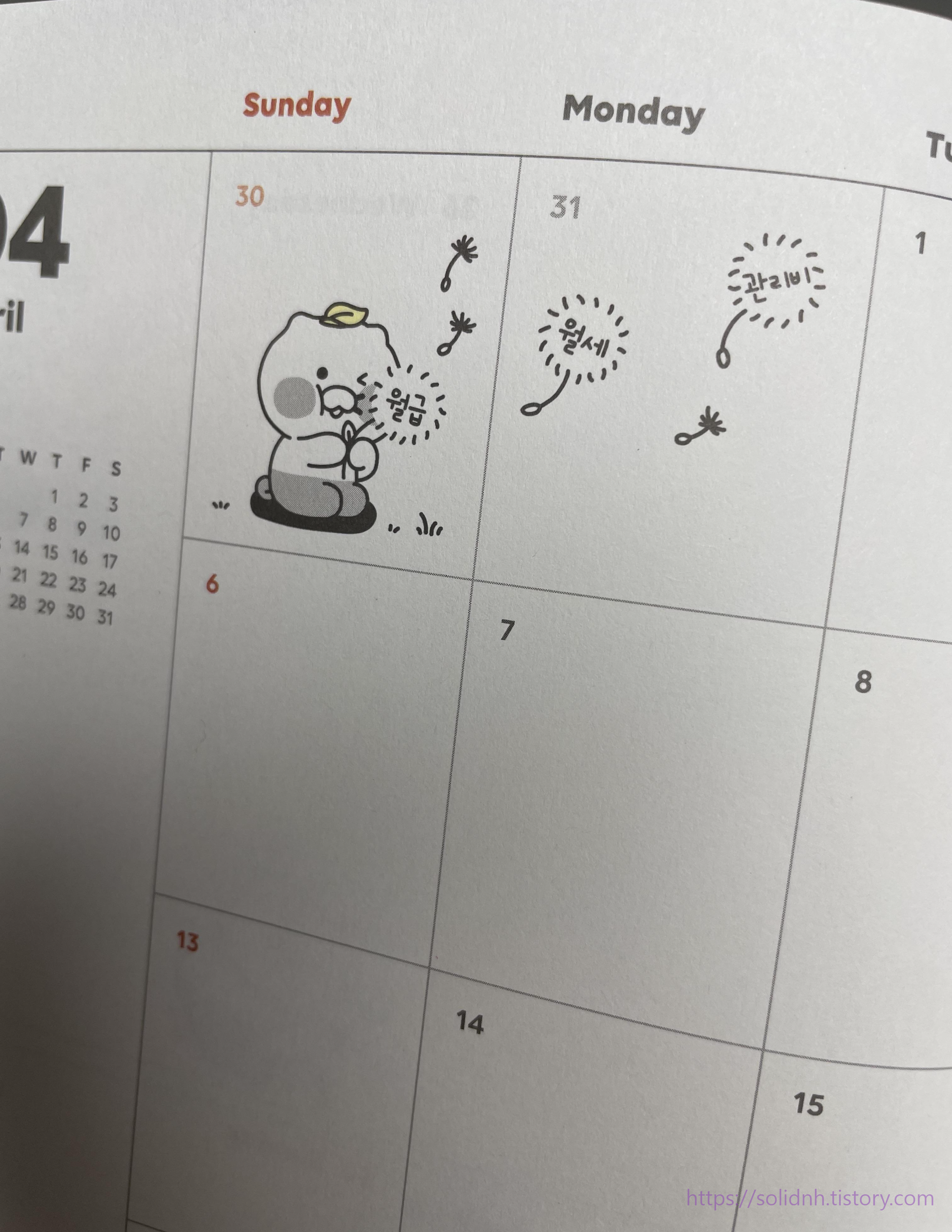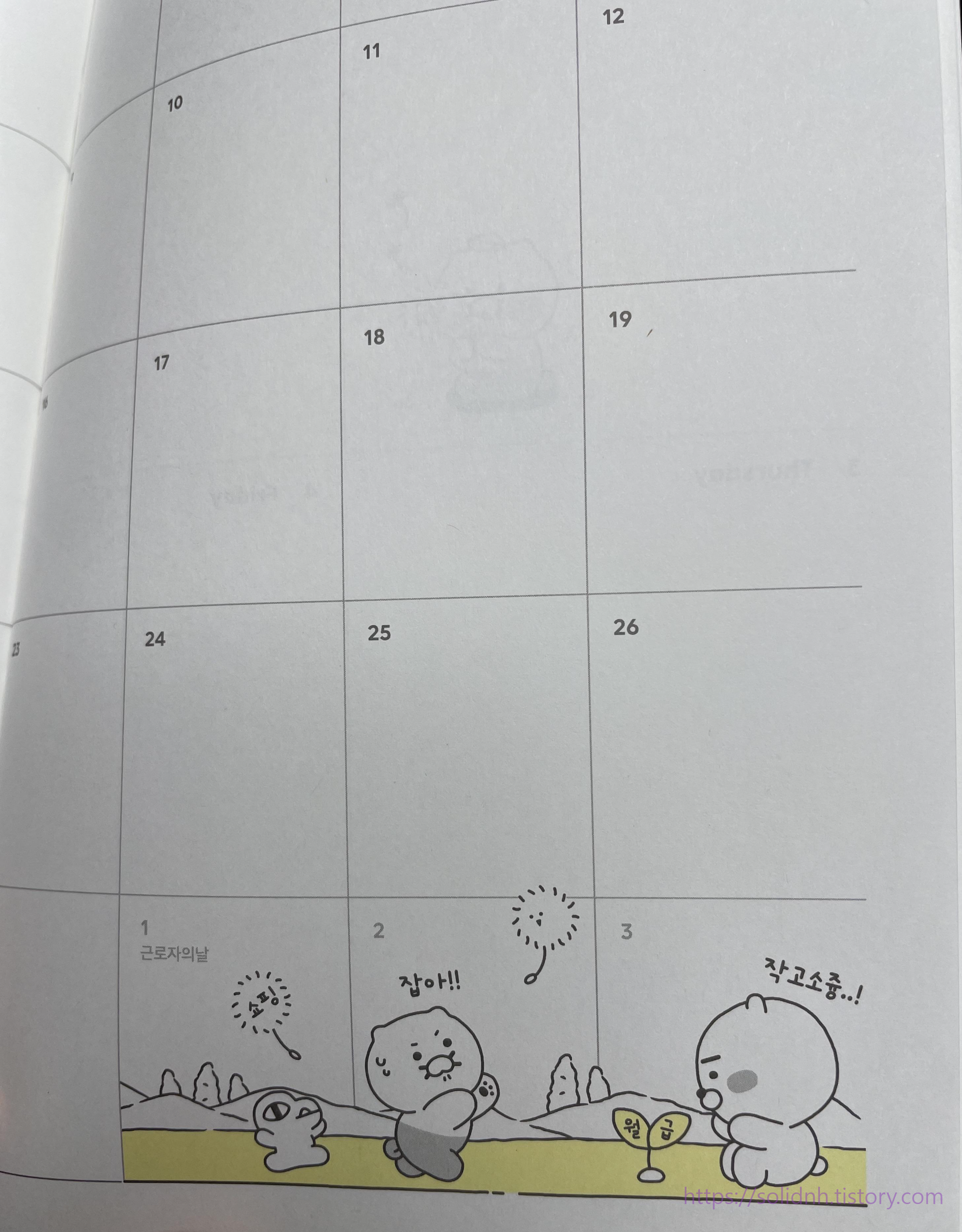 월간 페이지들.. 달마다 귀여운 그림들이 있어요 ㅋ